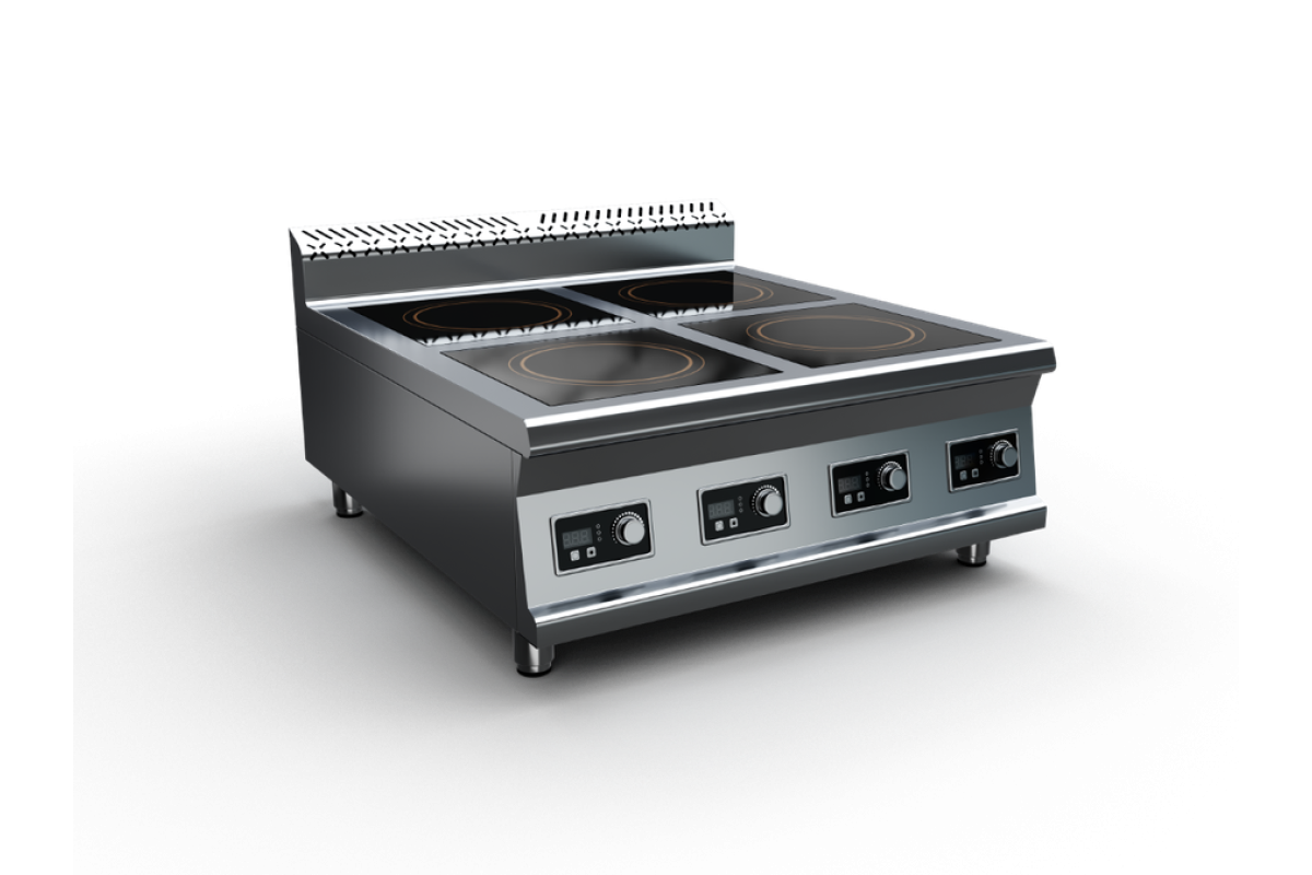 Плита индукционная, столешница из нержавеющей стали марки AISI 430 толщиной 1 мм, корпус из нержавеющей стали марки AISI 430 толщиной 0,8 мм. Имеет 4 конфорки мощностью по 3,5 кВт, питание 380 В. Габариты стеклокерамики 340х340х6 мм. Поставляется в собранном виде. Вес плиты индукционной 48 кг. Габариты упаковки 855х915х485 мм.