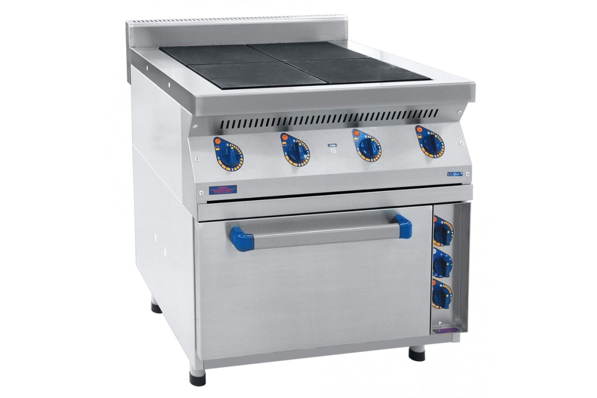 Плита электрическая четырехконфорочная с жарочным шкафом Abat ЭПК-47ЖШ предназначена для приготовления первых, вторых, третьих блюд в наплитной посуде, а также для жарки полуфабрикотов из мяса, рыбы, овощей, выпечки мелко штучных кулинарных изделий и запекания творожных блюд на предприятиях общественного питания самостоятельно или в составе технологических линий.