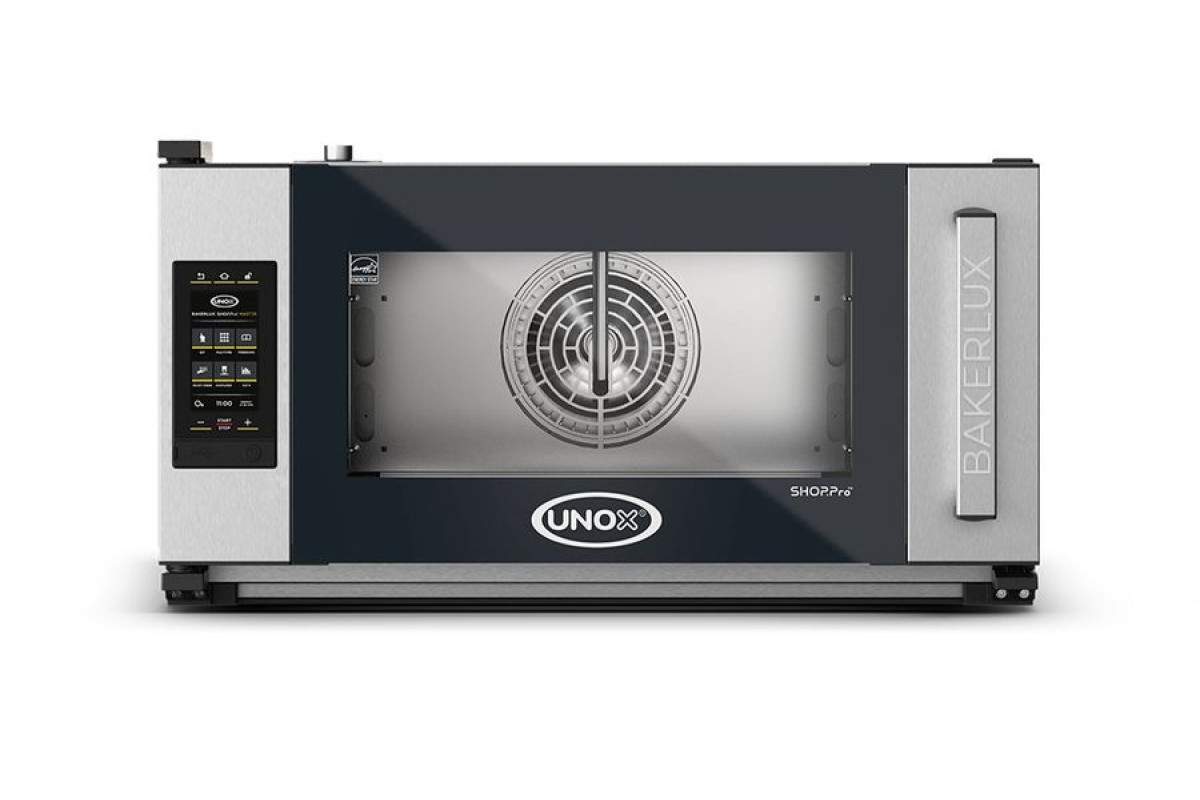 Конвекционная печь для выпечки, с пароувлажнением, 3 уровня 600х400 (противни в комплект не входят), расстояние между уровнями 75мм. Сенсорная панель управления MASTER с тачскрином, ЖК-дисплей (диагональ 7"), 896 программ, 9 шагов выпекания, функция Multi.Time (поуровневый контроль времени готовки с возможностью установки до 10 таймеров), 2 скорости вентилятора. Регулируемое пароувлажнение (шаг 20%). Температурный режим: от 50 до 260 °C. Дверь с автоматическим замком, открывается справа налево. WiFi модуль.