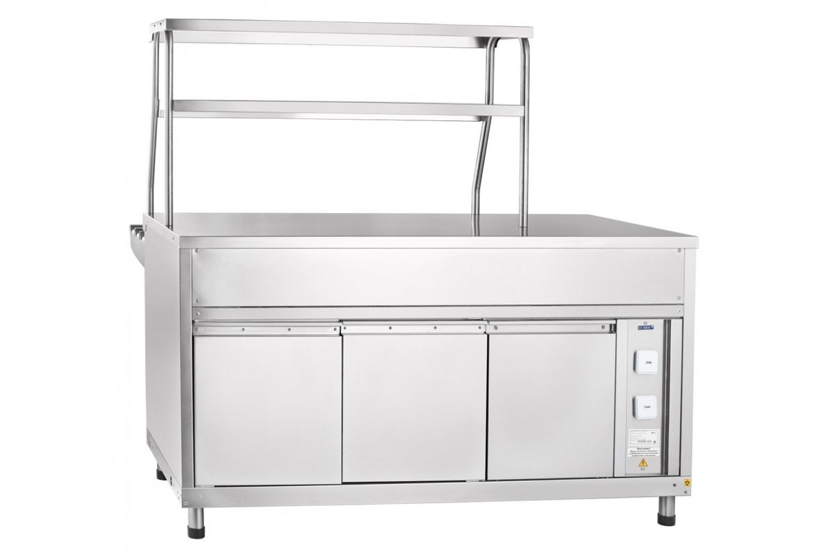 Прилавок для горячих напитковAbat ПГН-70 КМ-01 предназначен для кратковременного хранения и раздачи потребителю хлебобулочных и кондитерских изделий, а также для установки на его столе термостата с напитками. - Модель оснащена подсветкой, двумя розетками с заземлением для подключения термостата или кипятильника, двумя полками и регулируемыми по высоте ножками. - Конструкция выполнена из нержавеющей стали AISI 304. - В комплект поставки входят направляющие для подносов.