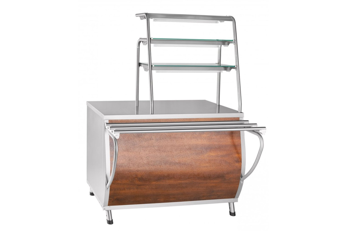 Прилавок для горячих напитков ПГН-70Т (нейтральный стол, 3 полки, 1120 мм) кашир. Линия раздачи "ПРЕМЬЕР" - кашированная, цвет "дуб"