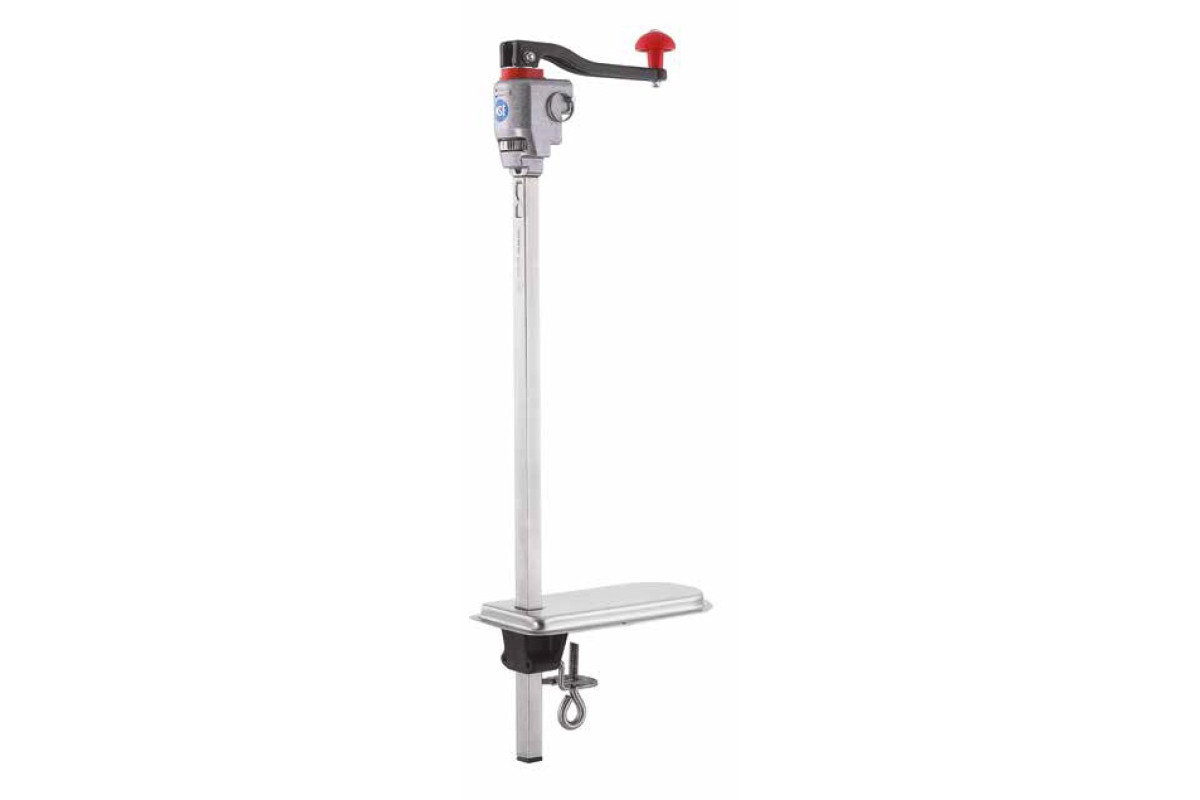 120*300*630мм, алюминиевый корпус, производительность в день 45-60 банок, открывает банки от 0,25 до 10 кг, вес нетто 2 кг, профиль из нержавеющей стали с регулируемым рабочим диапазоном позволяет открывать банки высотой до 55 см, сертификат NSF