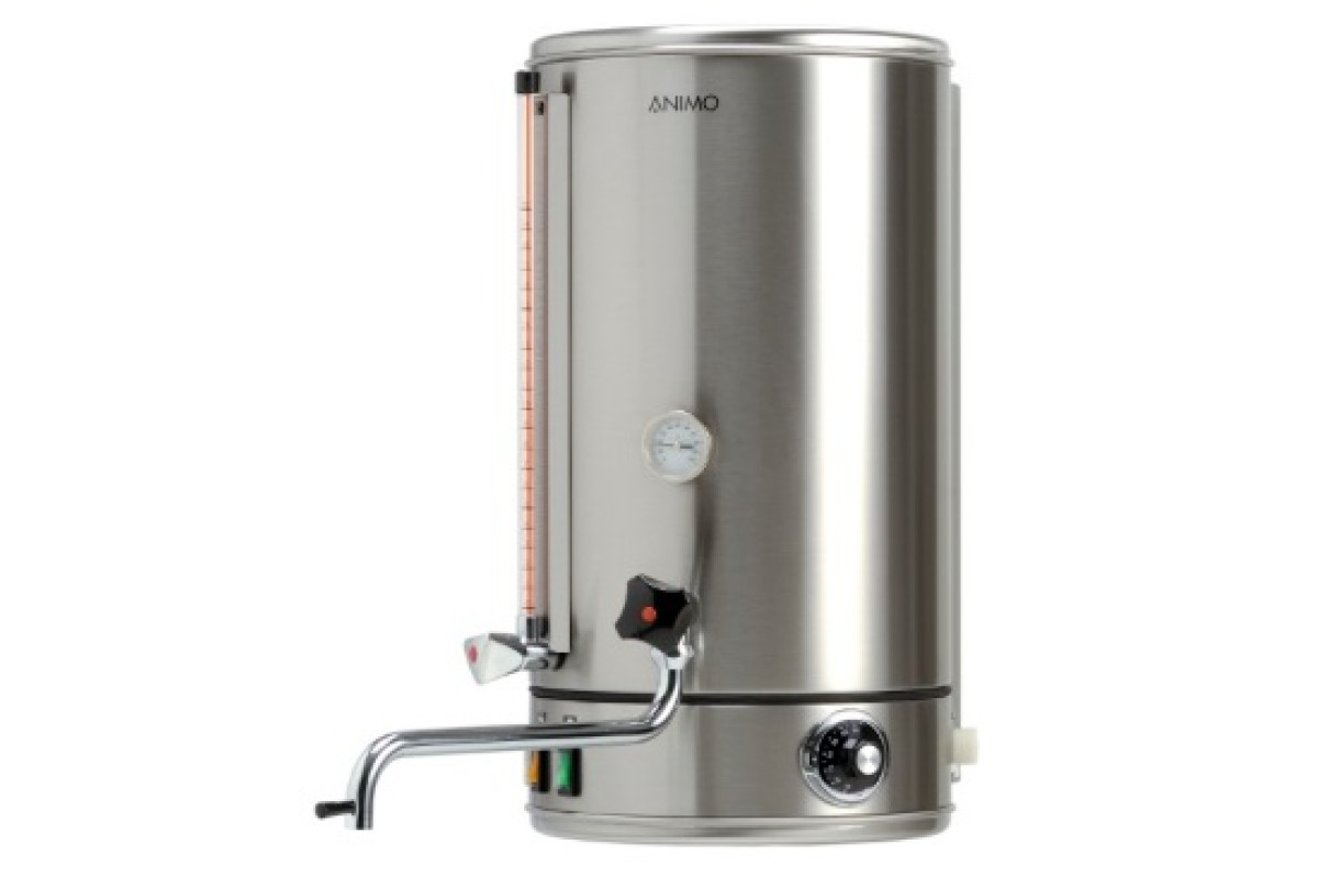 304x304x585 мм, 380В, 6,6кВт, пылевлаго защита IP43, НАСТЕННЫЙ, подключение к водопроводу и стеклянным окном уровня воды, вкл./выкл. функции долива, одностенный из нержавеющей стали CrNi 18-9, ёмкость 20 л, время розлива 1л 6-9 с, производительность в час: 60 литров, время нагрева за 23 мин. с 20 до 97 C, регулируемая температура от 0 до +97C