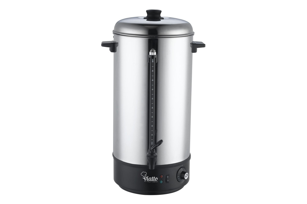Кипятильник VIATTO MK-WB20 настольный заливной электрический. Комбинированный корпус — из нержавеющей стали и пластика. Закрытый нагревательный элемент. Одинарные стенки. Мерное стекло позволяет отслеживать уровень воды. Терморегулятор дает возможность установить температуру в пределах +30...+100С.