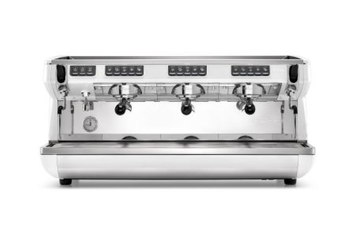 Кофемашина-автомат традиционная с 3 высокими группами и экономайзером. Габариты, мм: 1014х545х498. Мощность, Ватт: 5200. Напряжение, Вольт: 220. Вес нетто, кг: 72. Объем бойлера, л: 15 с изоляцией. Корпус: задняя панель - нержавеющая сталь, боковые панели, основание - пластик ABS белого цвета. Производительность, чашек в день: 300.
