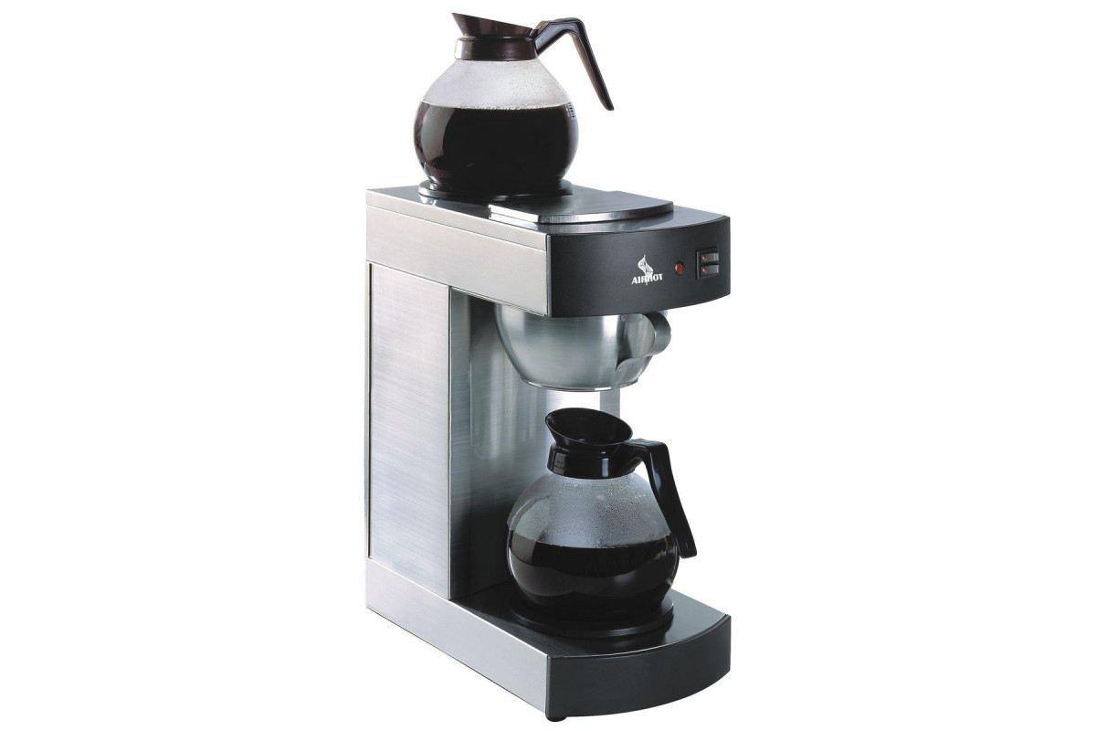 Кофеварка AIRHOT CM-2 предназначена для приготовления кофе из молотых зерен. Оборудование изготовлено из нержавеющей стали. Модель оснащена подставкой для кофейника и нагревательной плитой, поддерживающей температуру приготовленного напитка. Кофейники, изготовленные из стекла и пластика поставляются отдельно. Объем кофейника 1,8 л.