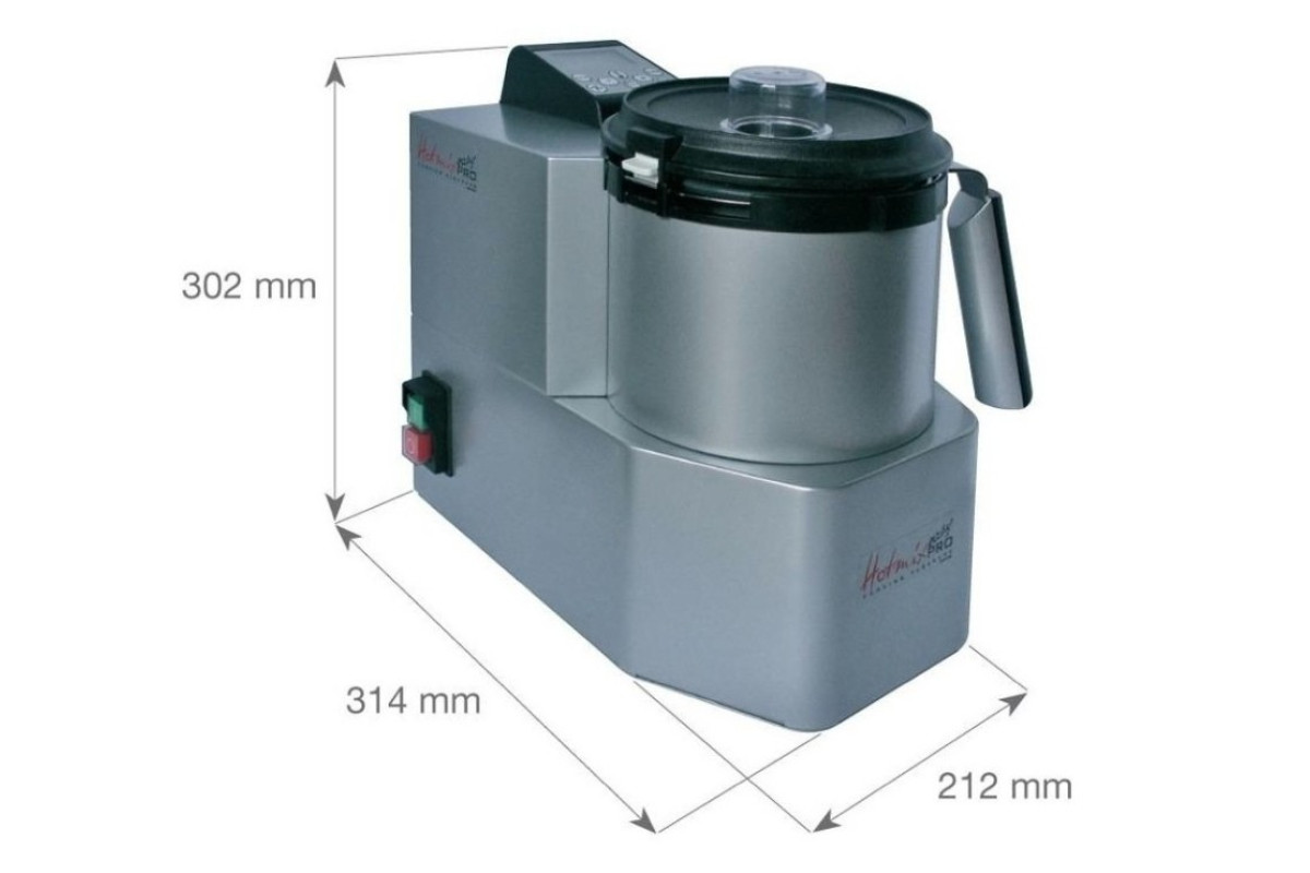 212x314x302, 220В, 2кВт,13кг. Объем чаши: 2 л, температура нагрева 24-130C, оборотов в минуту до 10000, 26 скоростных режима, макс. время непрерывной работы - час