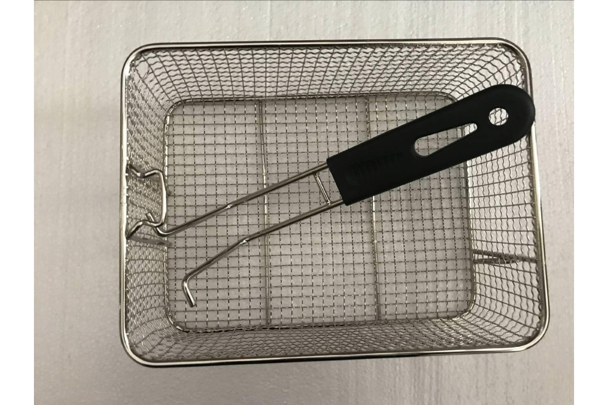 Конструкция корзины включает удобную длинную ручку, которая защищает руки от брызг горячего масла. Металлическая сетка обеспечивает свободную циркуляцию масла вокруг продукта для равномерной прожарки и быстрого стекания излишков жира после приготовления.