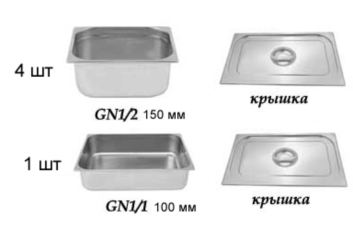 Состав комплекта: GN-1/1 Н-100 – 1шт.(530х325х100мм, 14л), GN-1/2 Н-150 – 4шт. (265х325х100мм, 10л, крышка 1/1 – 1шт. (530х325мм), крышка 1/2 – 4шт.(265х325мм).Предназначены для хранения, транспортировки, приготовления сырья и полуфабрикатов, а так же для выкладки готовых блюд на линии раздачи питания в объемах, требуемых для предприятий питания и торговли. Комплект из 5-ти гастроемкостей предназначен для использования в:
