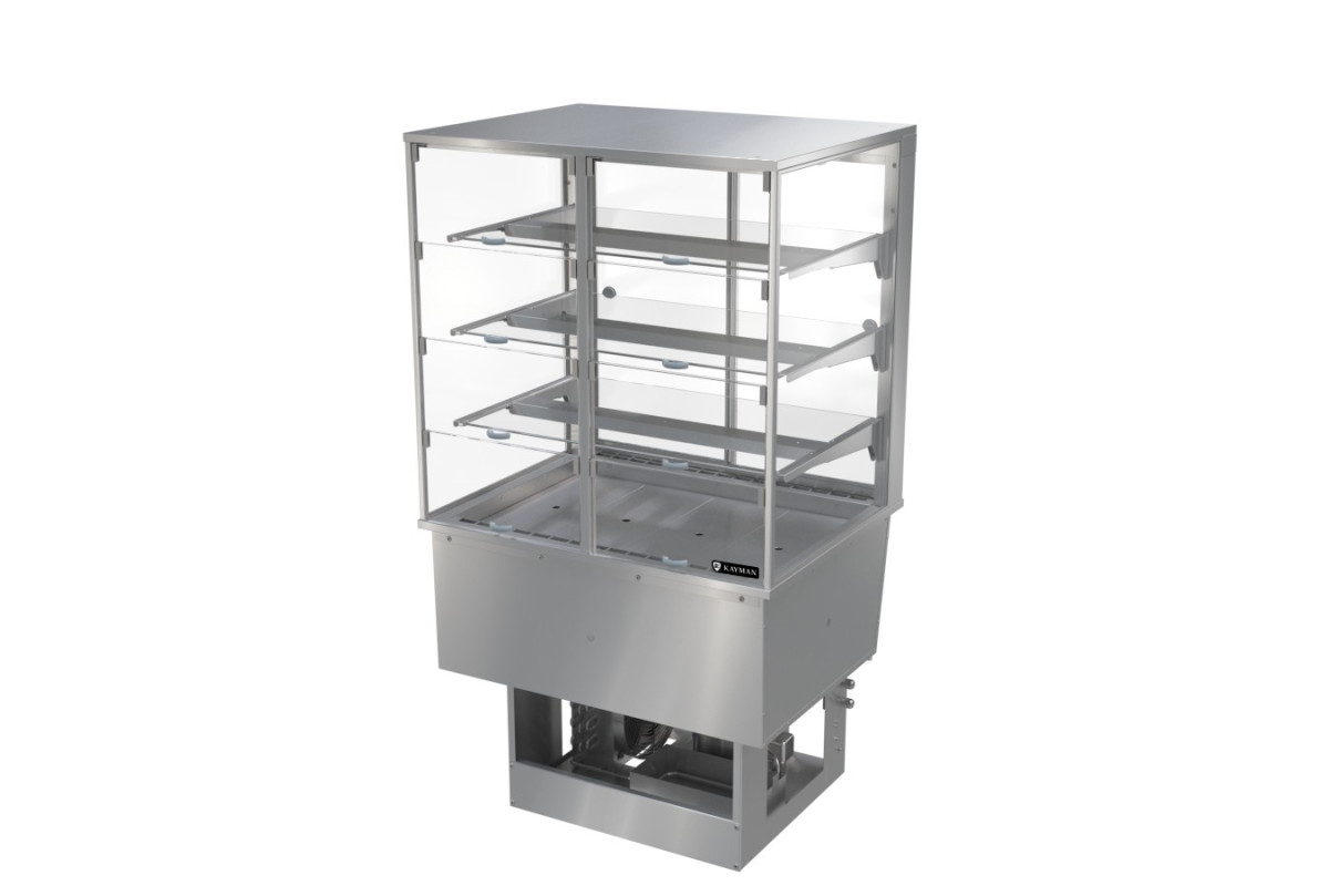 900х700х1570мм, 1,0кВт, 220В, температура +5…+10 C, хладагент R404a, объем 480л, площадь выкладки 1,7м2, расположение испарителя-нижнее, тип охлаждения-динамический, встраиваемая, кубической формы. Корпус витрины из стеклопакетов и светодиодная подсветка каждой полки. Маятниковые двери со стороны покупателя, двери-купе со стороны обслуживающего персонала. 3 съемные полки из закаленного стекла.Нижняя полка состоит из четырех съемных панелей, образующих поверхность для выкладки готовых блюд. Вместо панелей можно разместить две гастроемкост GN-1/1 150 мм.Варианты дополнительной комплектации: ТУМБА-ПОДСТАВКА KAYMAN GUSTO ТПХ-1240-02-К, НАПРАВЛЯЮЩАЯ ДЛЯ ПОДНОСОВ KAYMAN GUSTO НП-1240-02, СТОЛЕШНИЦА ДЛЯ ВХ-К KAYMAN GUSTO 1240Х900 ЦЕНТР. (ДЕРЕВО).