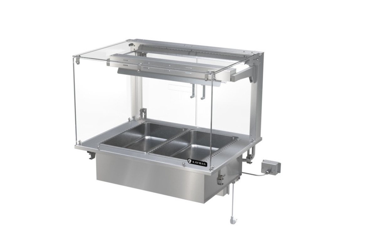 900х700х930мм. Пределы регулирования температуры 20…80С. Тип нагрева-снизу сухой+паровой, сверху ИК-лампа.Тепловая витрина встраиваемая. Каркас витрины из AISI430. Внутри витрины ванна AISI304 для гастроемкостей GN 1/1 150 мм (гастроемкости в комплект поставки не входят и приобретаются отдельно). Корпус витрины выполнен из закаленного стекла. Внутри ванны размещены 3 сухих ТЭНа. Два ТЭНа, расположенные под гастроемкостями, регулируются одним терморегулятором. Третий ТЭН служит для создания паровой бани. Работа данного ТЭНа регулируется отдельным терморегулятором.Предназначена для кратковременного хранения, демонстрации и поддержания в горячем состоянии горячих бутербродов, теплых салатов, пиццы, гарниров, мясных, рыбных и прочих блюд.