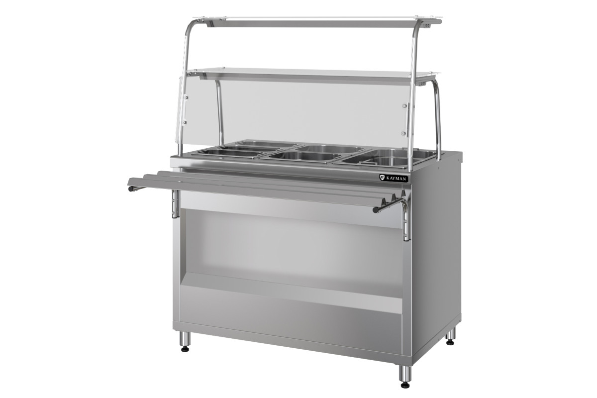 1500x705 (1030)x870 (1484)мм. 230В. Номинальная потребляемая мощность ТЭНов 3,0 кВт. Мощность светодиодного светильника 0,013кВт. Мощность светодиодного светильника на передней панели 0,013 кВт. Объем воды, заливаемой в 1 ванну 15 л. Диапазон регулирования рабочей температуры воды в ванне 30-90 С. Время разогрева до рабочей t 30 мин. Терморегулятор 1шт., светодиодный светильник 1 шт., кол-во ТЭНов 3шт. Площадь поверхности полки 0,88м2. 7 комплектов гастроемкостей с крышками,противокашлевый экран. Направляющие входят в комплект.