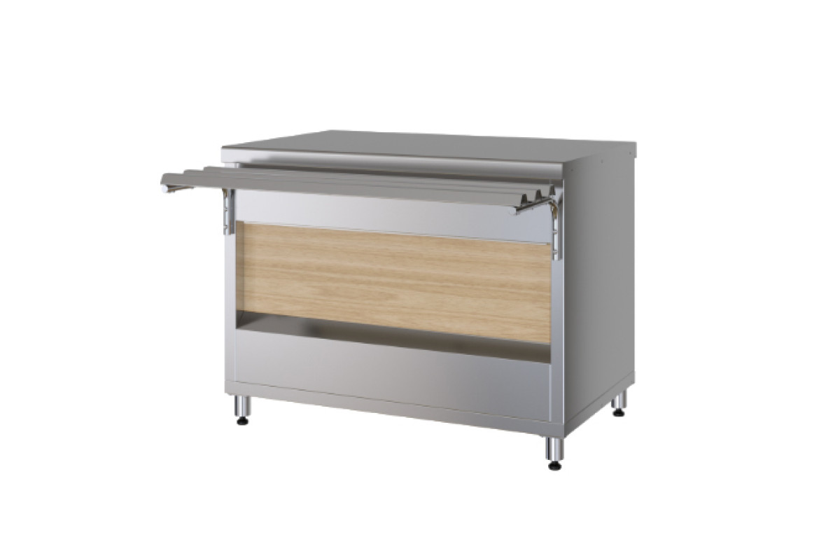 1120x705x870мм, декор дерево клен. Без полок. Площадь поддонов и полок для выкладки продуктов 0,45 м2. Площадь поверхности столешницы 0,77м2. Направляющие входят в комплект.