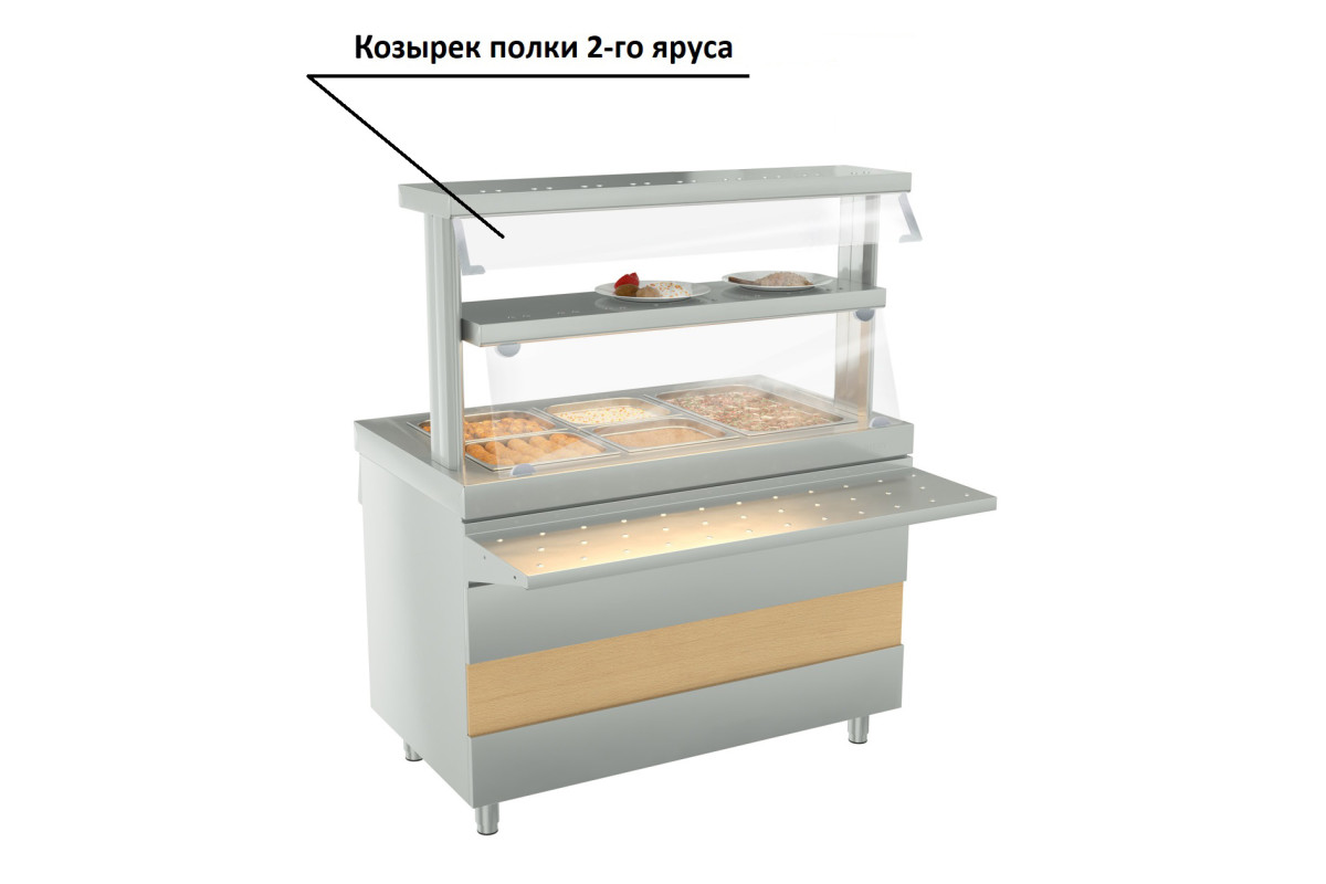 На прижимы стекла крепятся самоклеющиеся силиконовые амортизаторы, предотвращающие скалывание края козырька при физическом воздействии. По торцам стекла устанавливаются прижимы и крепятся к полке 2-го или 3-го яруса при помощи винтов. Наличие фасок торцов стекла. Козырек защищает готовые блюда или другой товар размещенный на полке, от попадания пыли со стороны посетителей и крепится ко 2-му и 3-му ярус полки на МАРМИТ ПЕВРЫХ БЛЮД KAYMAN PRESTO МР1-2.1200-02-О-Л ДВУХКОНФОРОЧНЫЙ, МАРМИТ ВТОРЫХ БЛЮД KAYMAN PRESTO МР2-1200-02-ПО, МАРМИТ ВТОРЫХ БЛЮД МР2-1200-02-СО, ПРИЛАВОК ОХЛАЖДАЕМЫЙ KAYMAN PRESTO ПО-1200-02-О-Л, ПРИЛАВОК НЕЙТРАЛЬНЫЙ KAYMAN PRESTO ПН-1200-02-О-Л.