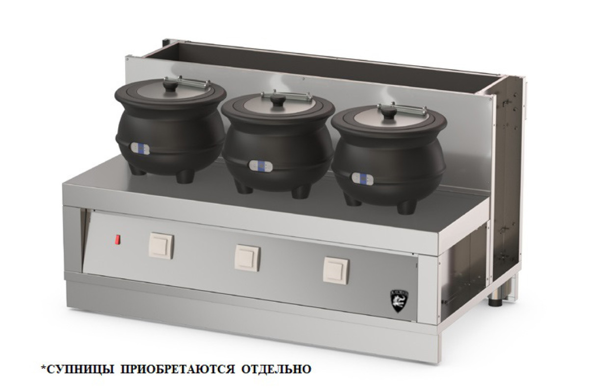 1370х788х81520мм, суммарная мощность подключаемого оборудования 3х2,3кВт. Мармит первых блюд предназначен для размещения электросупниц, поддерживающих первые блюда в горячем состоянии. Конструкция сборная, бескаркасная. Под столешницей со стороны обслуживающего персонала расположены 3 розетки 220 В. Ножки мармита выполнены из нержавеющей стали, имеют пластиковую опорную часть и регулируют высоту модуля 20 мм. В комплект поставки входят передний и задний плинтусы из нержавеющей стали. Варианты дополнительной комплектации:ПОЛКА 1-НО ЯРУСНАЯ KAYMAN GUSTO П-1-1370-02, НАПРАВЛЯЮЩАЯ ДЛЯ ПОДНОСОВ KAYMAN GUSTO НП-1370-02,ПОДСВЕТКА ДЛЯ ТУМБ-ПОДСТАВОК KAYMAN GUSTO ПСВ-1370-02 .