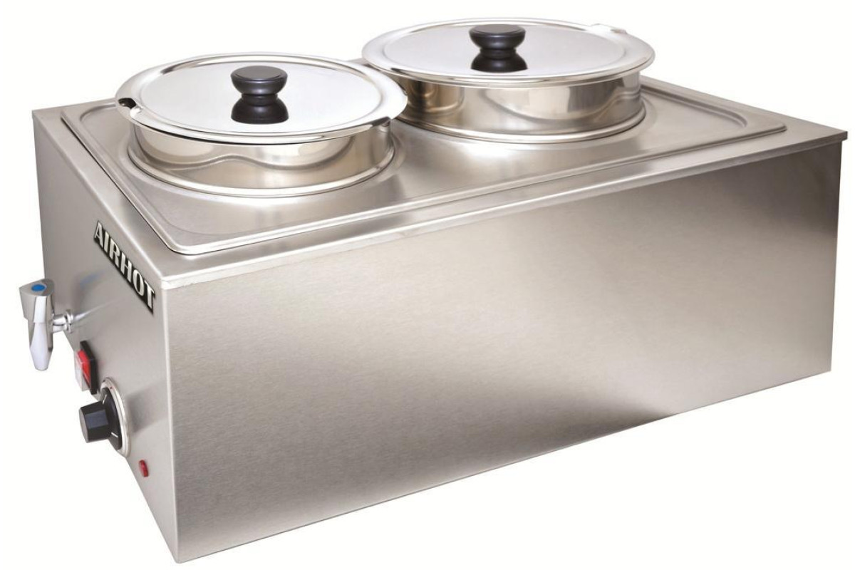 МАРМИТ AIRHOT SB-2 предназначен для поддержания температуры первых блюд, супов и соусов в условиях шведского стола. Он идеально подходит для оснащения линий раздачи в ресторанах, столовых, кафе и других заведениях общественного питания. Ключевым преимуществом модели является использование водяного нагрева, который обеспечивает мягкое и равномерное подогревание содержимого, предотвращая его подгорание и высыхание.