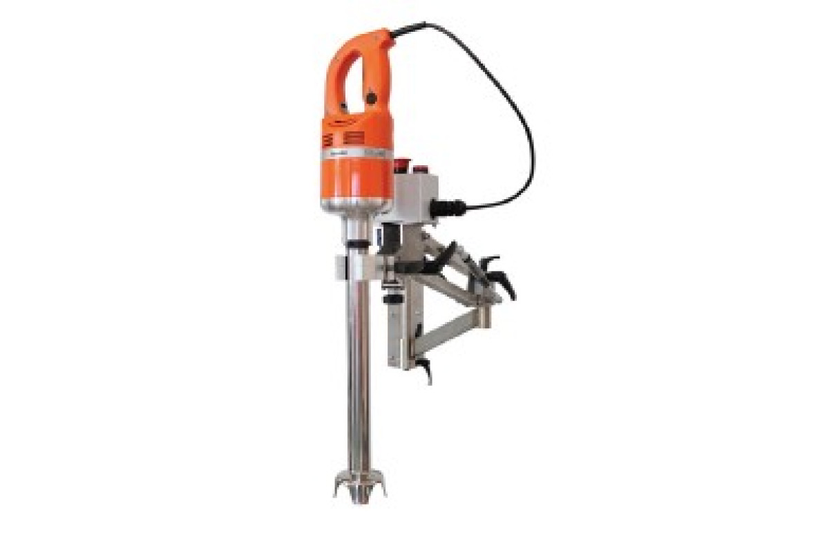 518x1119x769, 3000-10,500 об/мин, длина ноги 410мм, 230В, 0,6 кВт, нерж. сталь, регулировка положения ножки блендера в диапазоне от +15 до -30, встроенная кнопка аварийной остановки.