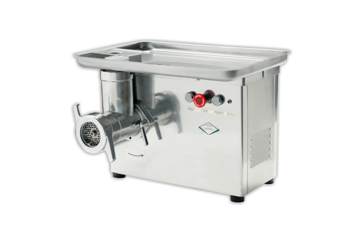 560х520х420мм, 350 кг/ч, предназначена для измельчения мяса и рыбы на фарш,повторного измельчения котлетной массы и набивки колбас,функция реверс, облицовка из нерж.стали, 380В, 1.91кВт, вес нетто -42кг, настольное исполнение, комплектация: нож подрезной-1шт, нож крестовой -2 шт, решетка 5 мм, решетка 9 мм, червячный редуктор