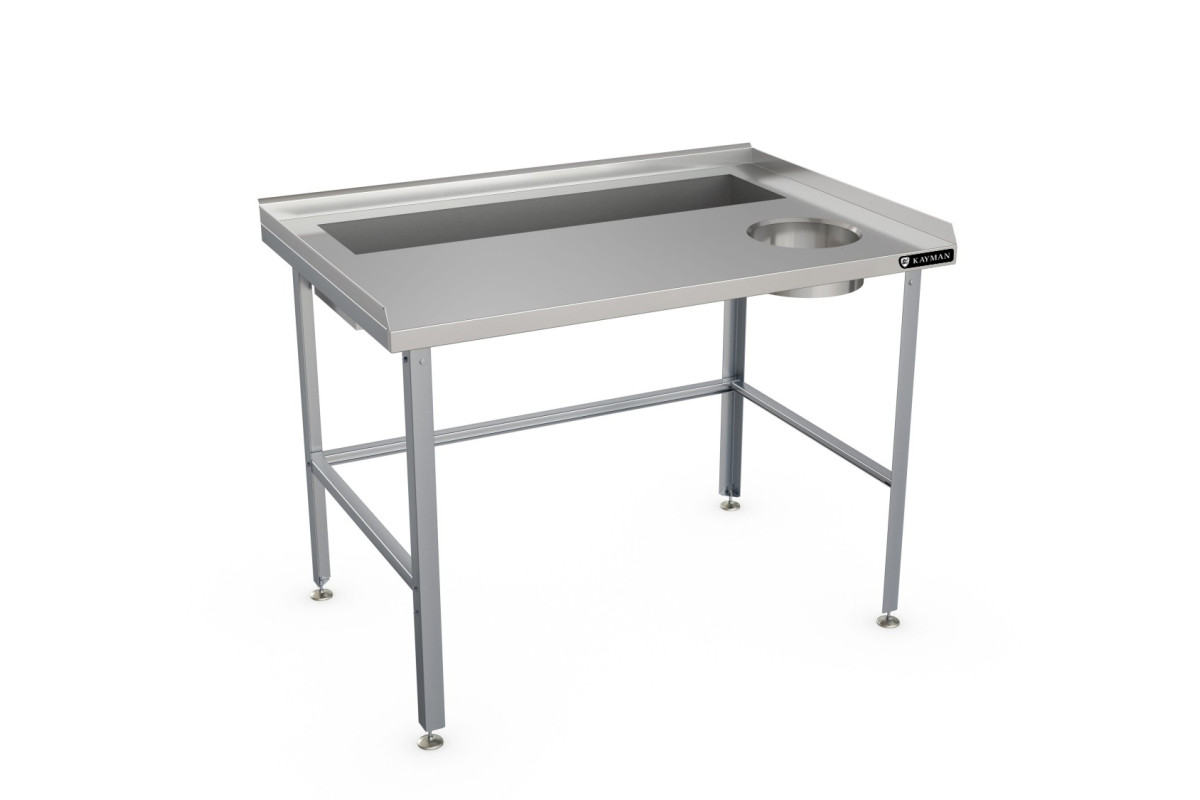 1200х800х870мм, нагрузка на столешницу 130кг, встроенная ванна 1шт., 1 отверстие для отходов, под которой помещается ёмкость для сбора отходов. 3 герметичных борта, высота борта 50мм, материал столешницы нерж. сталь AISI304 0,8мм. Материал подложки столешницы ДСП 16мм, каркас оцинкованная сталь 1,2мм, профиль уголок 40х40мм, диапазон регулировки опорных ножек 20мм. Вес 28,1кг. Изделие разборное и поставляется в удобной упаковке, что облегчает транспортировку и хранение.