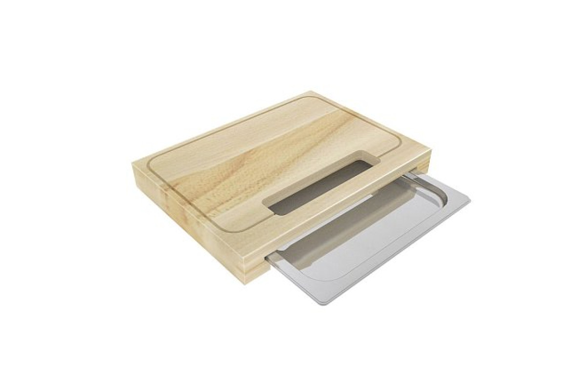 400х300х50мм, в комплекте ёмкость GN 1/2 H-20, отверстие для сброса отходов и сбора жидкости, материал натуральный бук, вес 2,3кг. Доска разделочная предназначена для нарезания и разделки продуктов. Поверхность доски промаслена растительным маслом для исключения ее рассыхания.