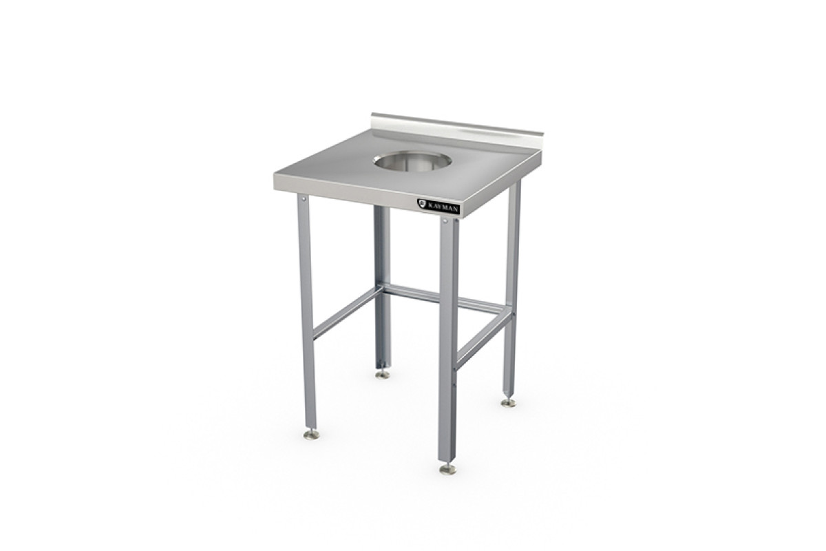600х600х870мм, нагрузка на столешницу 54кг, 1 отверстие для отходов, под которым помещается ёмкость для сбора отходов. Диаметр отверстия для отходов 225мм. Расположение отверстия для отходов-слева.