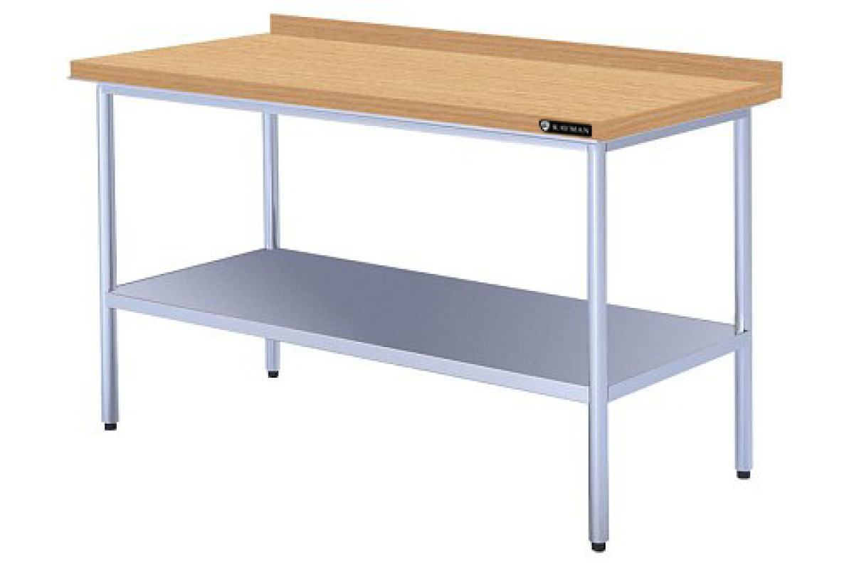 1800х800х870мм, 1 борт, столешница – массив бука 40мм, ножки нержавеющая сталь AISI 201, зеркальная, толщина металла 1,5мм, диаметр 40мм, к стойкам приварены уголки для крепления столешницы и уголки для крепления полки на высоте 350 мм от пола. Полка сплошная из нержавеющей стали AISI430. Диапазон регулировки опорных ножек 20мм. крепится к уголкам на каркасе. Вес 68,7кг. Для усиления прочности снизу полки установлен швеллер. Стол кондитерский предназначен для использования в хлебопекарном производстве в качестве поверхности для работы с тестом и мукой.