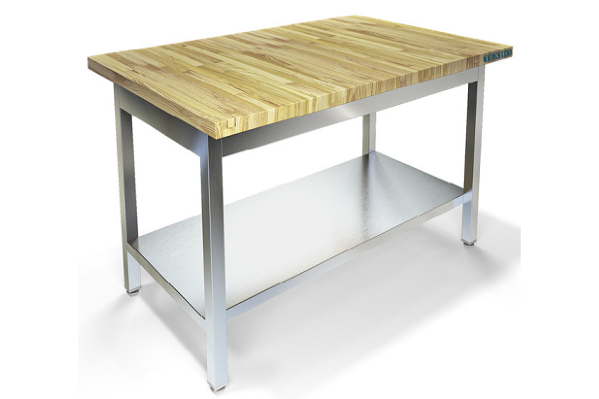 1000х800х850мм, Стол кондитерский со столешницей бук толщиной 40мм. Каркас разборный из трубы 40х40 нержавеющей стали марки AISI 304 толщиной 1,2мм. Полка сплошная из нержавеющей стали марки AISI 430 толщиной 0,8мм. Регулируемые опоры. Стол поставляется в разобранном виде.