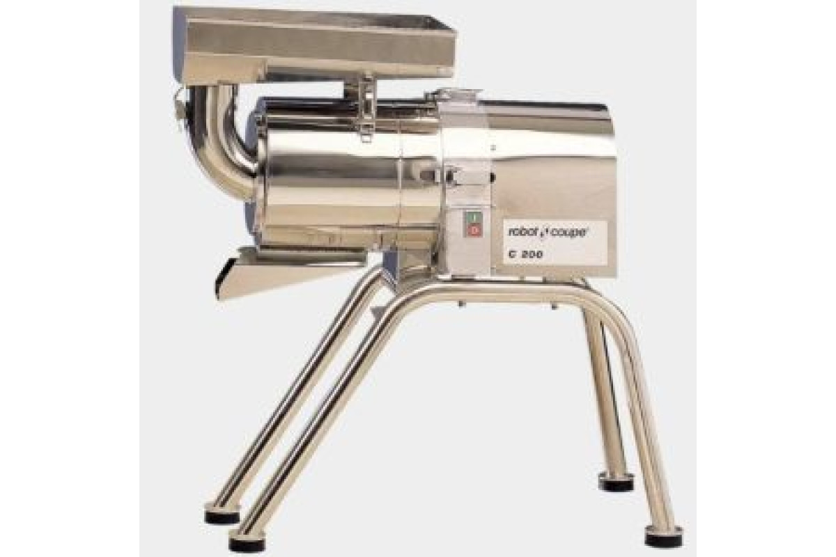 1030х400х860 мм, 1500об/мин, 1,8 кВт, мультифазная 230-400/50/3, поставляется с перфорированным ситом 1 мм и 3 мм, производительность 150 кг/ч. Непрерывная подача ингредиентов. Непрерывный выброс отходов.Чаша, моторный блок, загрузочный лоток, ножки - всё из нержавеющей стали .