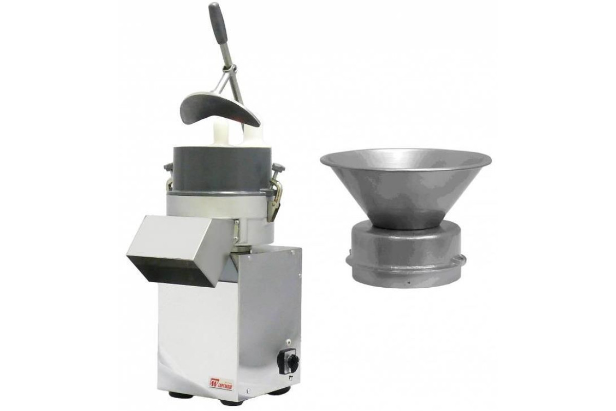 Производительность по нарезке - 350 кг/час, по протирке - 400 кг/час, кол-во видов нарезки - 8, кол-во видов протирки - 1 (диаметр ячеек 3 мм), загрузочное отверстие для протирки диам 122 мм, загрузочное отверстие серповидное радиус 100мм, загрузочное отверстие круглое диам 66/50мм.