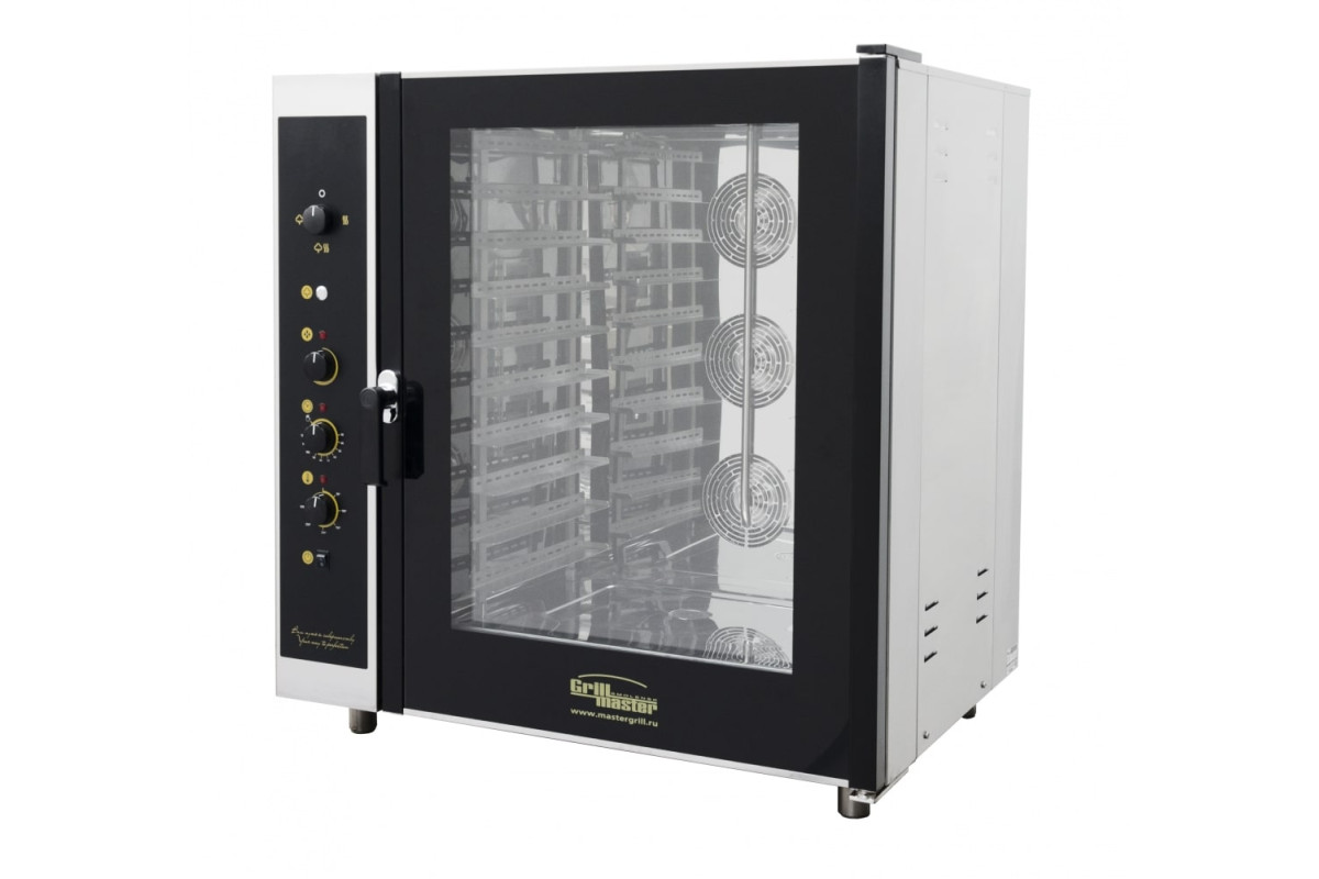 1076х867х1113мм, 10 уровней под гастроемкости GN 1/1 325х530 мм или пекарский лист 600х400 мм, шаг уровней 80 мм, электромеханическое управление,4 режима работы, 3 мощных вентилятора с реверсом, автоматическое поддержание температуры в пределах 50-300С, система автоматического и ручного пароувлажнения, двойная система парообразования (парогенератор+инжекционный впрыск), дверь пароконвектомата из двойного термостойкого стекла, открывающееся внутреннее стекло, подсветка камеры, душ, 16 кВт в режиме конвекция и пароконвекция, 6 кВт в режиме чистого пара, полностью из нерж/стали, г.нетто 1076х867х1113мм, 220кг, г.брутто:1160х1000х1330 мм, 257кг