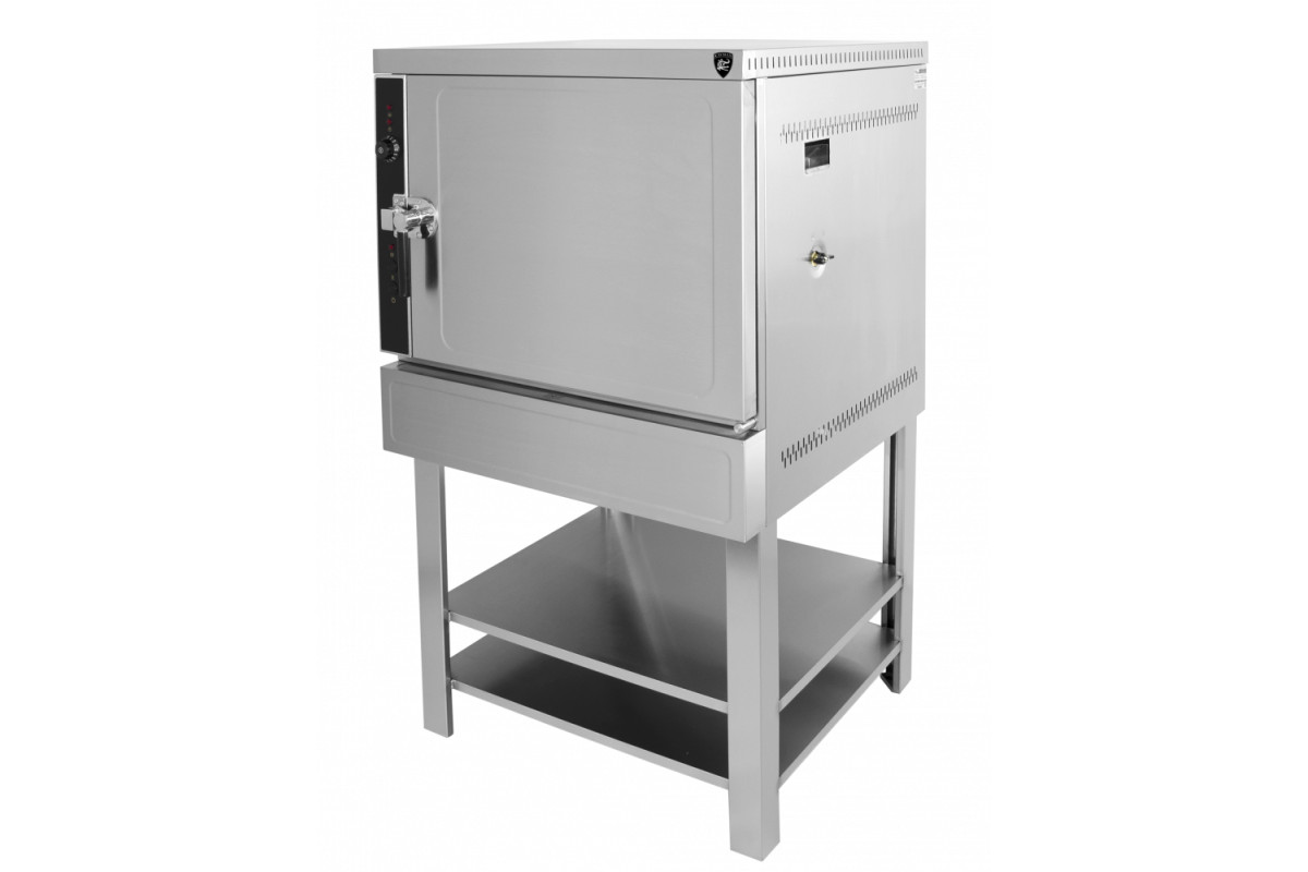 860х860х1470 мм, 1 камера из н/стали, 5 уровней под противни и гастоемкости GN 2/1 650х530 и GN 1/1 325х530, мощный парогенератор из н/стали, безопасное, плавное открытие дверцы с выпуском пара, таймер на 120 минут с сигналом, подставка из н/стали и противень с перфорацией 650х550х15 мм в комплекте, 6 кВт,50кг, г.брутто:960х960х1720,75кг