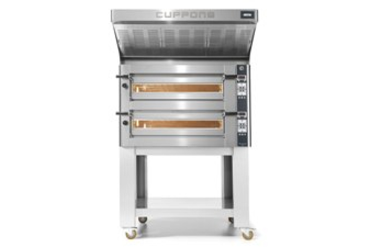 1510х1420х780мм, 25,2кВт, 380В, размер камеры: 1080х1080х140мм, вместимость 9+9 пицц по 35см или 4+4 по 50см, двухкамерная моноблочная печь