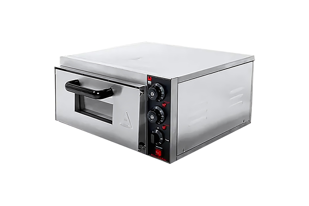 Печь для пиццы, 1 камера на 1 пиццу, размер камеры 400x400x150мм, макс.темп 360С, таймер, керамический под, 2 кВт, 220В, корпус из нерж.стали, подсветка