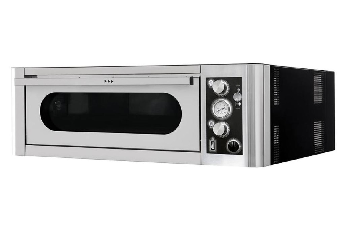 Модель отличается моноблочной конструкцией, предназначенной для установки на подставку. Вместительная камера из нержавеющей стали с одним уровнем позволяет одновременно размещать до шести пицц. Нагревательные элементы, скрытые в огнеупорном камне, и прочный корпус из крашеной стали обеспечивают долгий срок службы и стабильность работы в интенсивном режиме.