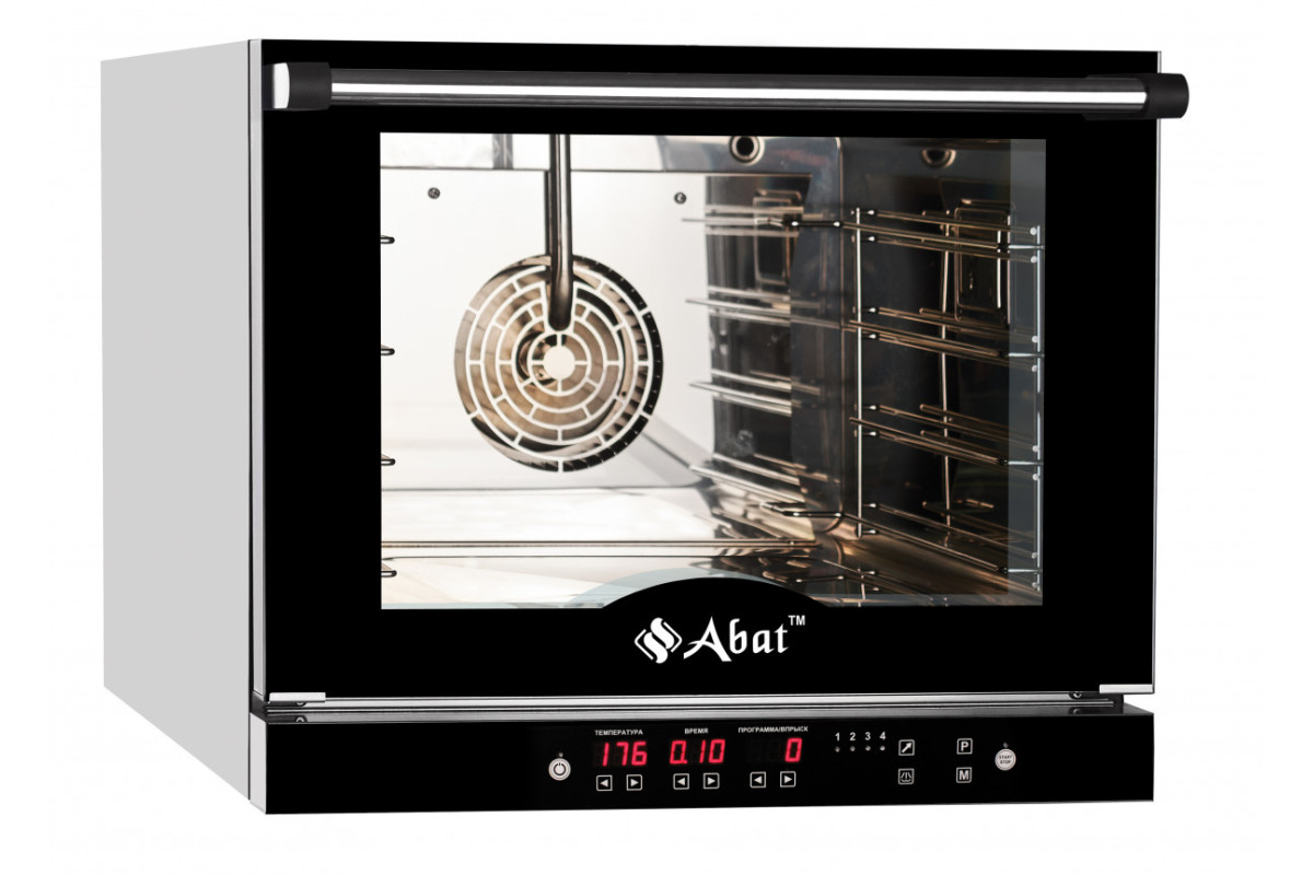 625х765х557мм, Конвекционная печь КПП-4П, 4 уровня, 460х330 мм, нерж. камера, нерж. корпус, электронная панель, пароувлажнение, регулировка влажности от 0 до 100%, реверс, память на 110 программ, до 4-ех этапов в программе, без противней