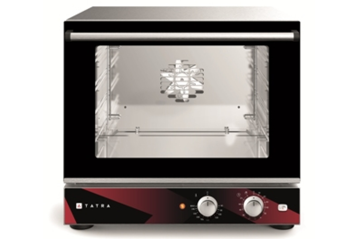 560х674х530 мм, 230В, 3,1 кВт, электромеханическая панель управления, 4 уровня, 4 противня 460х340 в комплекте, направляющие 460х340 мм, 1 скорость вентилятора, пароувлажнение (кнопка подачи пара)