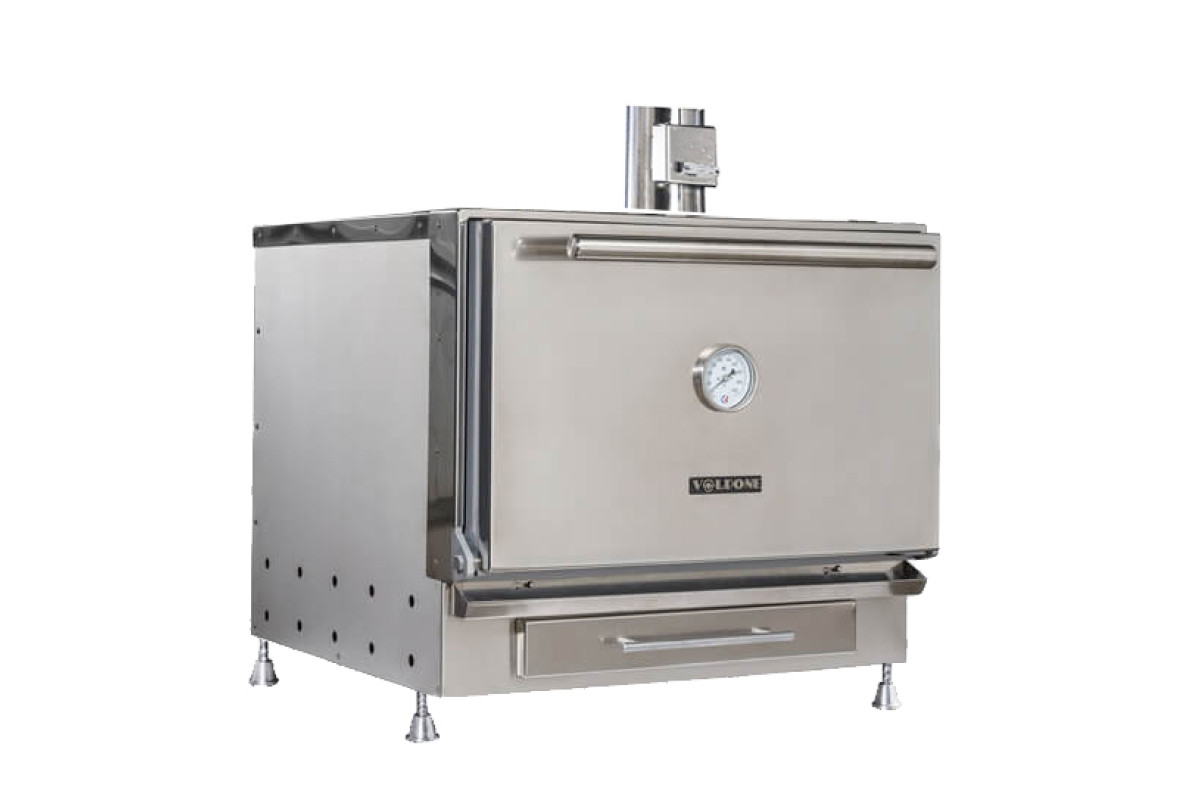 680х760х845 мм, Рабочая температура: до 450 С, рекомендована для использования в частном приусадебном хозяйстве во встроенном или настольном варианте монтажа, печь также подходит для небольших кафе с количеством посадочных мест до 50, регулировка поддува выведена наружу, Стандартная комплектация: верхняя шиберная заслонка, выдвижной ящик для сбора золы, выполняющий функцию нижнего регулятора тяги воздуха, комплект колосников, термометр, 1 гриль-решетка, лоток (жиросборник)