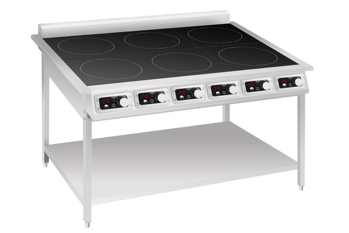20ПЛИТА ИНДУКЦИОННАЯ INDOKOR IN3500-6PRO ШЕСТИКОНФОРОЧНАЯ НА ПОДСТАВКЕ — это профессиональное решение для предприятий общественного питания, где требуется высокая производительность и эффективность. Плита предназначена для интенсивного использования на кухнях ресторанов, кафе, столовых и других пищеблоков. Ее ключевое преимущество — индукционный принцип нагрева, который обеспечивает быстрое приготовление пищи, максимальный КПД и значительную экономию электроэнергии по сравнению с традиционными электрическими или газовыми плитами. Наличие шести независимых конфорок позволяет одновременно готовить несколько блюд, а встроенная подставка делает оборудование мобильным и удобным в эксплуатации.