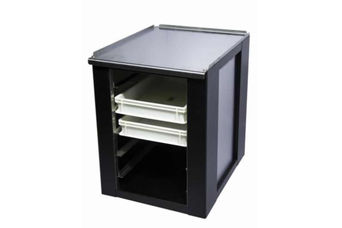 618х775х900мм, 41кг, г.брутто 718х875х1150, 61кг, 5 направляющих под противни или ящики для теста формата 600х400, колесами со стопорами, н/сталь/сталь с покрытием