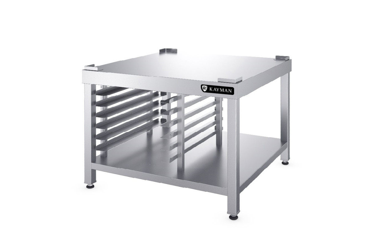 Заказ от 5шт.800х800х700мм, вместимость GN-1/1 6шт., вместимость противней 600х400мм 6шт. Материал столешницы, полки и направляющих – нержавеющая сталь AISI304, материал стоек - нержавеющая сталь AISI201.Сплошная столешница позволяет установить любое технологическое оборудование. Специальные ограничители на столешнице предотвращают падение оборудования. Конструкция подставки разборная. Стойки выполнены из трубы квадратного сечения 40х40 мм. В нижней части подставки имеется сплошная полка. Углы столешницы заварены и зачищены для обеспечения простоты санитарной обработки и уборки. В верхней части столешницы по углам установлены упоры, предотвращающие случайное падение оборудования во время его эксплуатации. На стойках расположены направляющие для установки гастроемкостей GN 1/1 и/или пекарских противней размером 600х400 мм. Опорные ножки подставки регулируются по высоте для компенсации неровностей пола. Предназначена для установки на ее поверхности пароконвектоматов электрических, любо