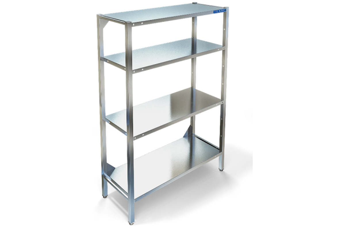 1490х510х1820мм, Стеллаж технологический разборный, стойки из трубы 40х20 нержавеющей стали марки AISI 430 толщиной 1,2мм. Четыре сплошные полки из нержавеющей стали марки AISI 430 толщиной 0,8мм. Расстояние между полками регулируемое с шагом 120мм. Регулируемые опоры. Стеллаж поставляется в разобранном виде.