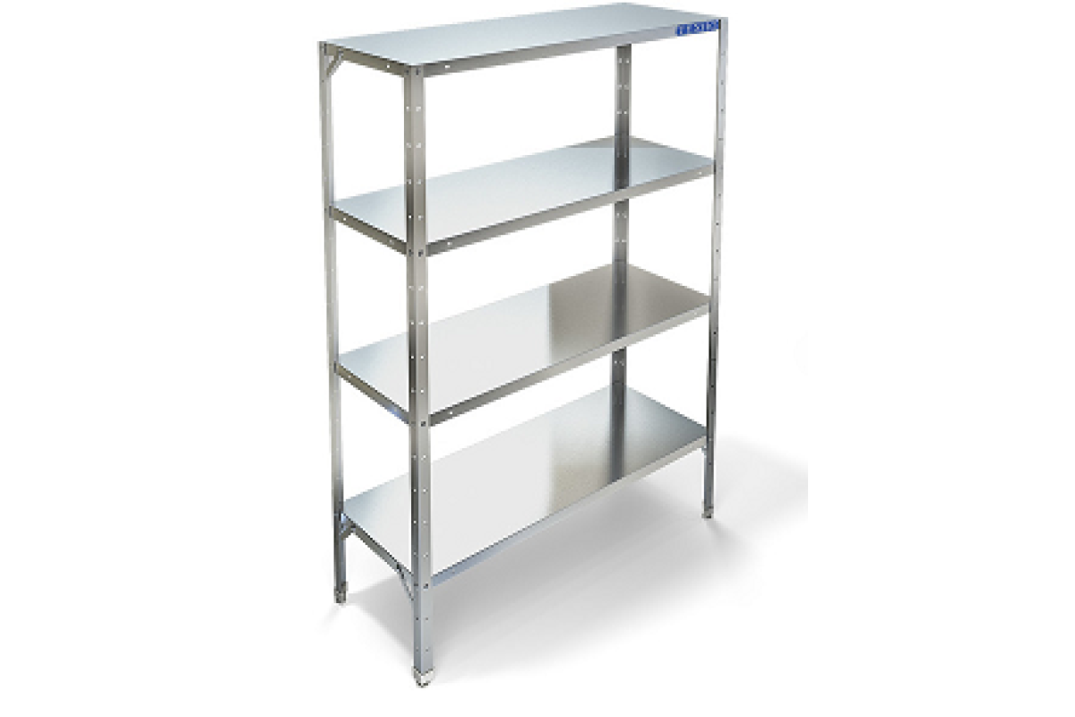 700х400х1820мм, Стеллаж технологический разборный, стойки из уголка 40х40 толщиной 2мм, покрытого порошковой краской серого цвета. Четыре сплошные полки из нержавеющей стали марки AISI 430 толщиной 0,8мм. Расстояние между полками регулируемое с шагом 50мм. Регулируемые опоры. Стеллаж поставляется в разобранном виде.