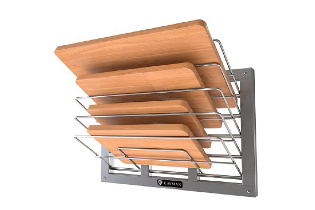 Габариты 600х240х446мм, кол-во секций 5, материал полки AISI 430 0.8мм, материал разделительного прутка AISI 304 3.0мм. Все кромки имеют подгиб. В комплект поставки полки входят крепежные планки и метизы для закрепления полки на стене. Конструкция полок позволяет размещать на них разделочные доски различных размеров. Два кронштейна крепится к стене и на них вешается полка. Изделие разборное. Полки кухонные для досок предназначены для размещения в горизонтальном положении, хранения и сушки в естественных условиях разделочных досок. Вес 5,6кг.