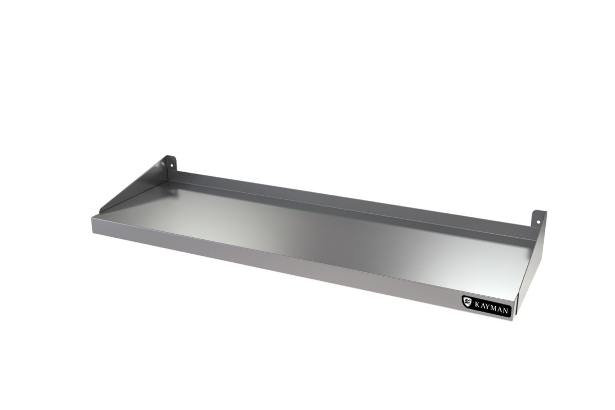 Габариты 1400х300мм, максимальная равномерно распределенная нагрузка 25кг, материал нержавеющая сталь AISI 430 0,8мм. Полка имеет борт, защищающий стеновые панели от воздействия влаги в моечных отделениях,-А также предохраняющий от попаданий продуктов на стену и в щель между стеной и полкой. Полки настенные кухонные предназначены для хранения и временной расстановки посуды, кухонного инвентаря, специй, продуктов в упаковке и пр. Края полки имеют подгиб для предотвращения травматизма персонала. Полки имеют универсальную конструкцию крепления бокового кронштейна. Благодаря этому, в зависимости от использования, боковые стенки могут крепиться как уголком вверх, так и уголком вниз. Такая конструкция боковой стенки позволяет выстраивать любые конфигурации. Полки крепятся на стене с помощью дюбелей и шурупов, входящих в комплект полки. Вес 4,3кг.