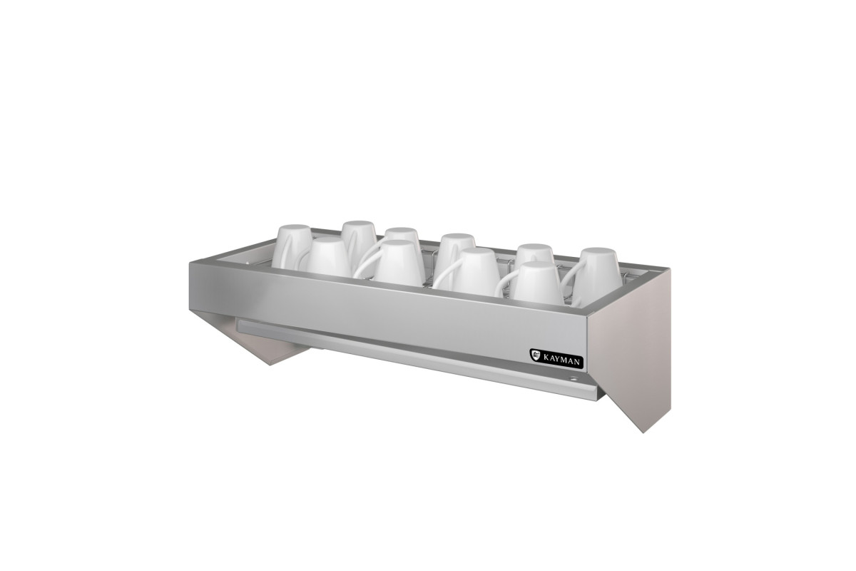 Габариты 600х300х225мм, каркас AISI 430 0,8мм, в каркас установлена кассета , изготовленная из н.с. AISI 304. Кассеты съемные. Состоит из полки, кассеты и сливного лотка. Кассета представляет собой решётку из прутка, в ячейки которой помещаются тарелки. Под полкой установлен сливной лоток для сбора жидкости. В лотке предусмотрен небольшой уклон, обеспечивающий сток жидкости, поступающей с мокрой посуды к сливному отверстию. Все края полки имеют подгиб для предотвращения травматизма персонала при пользовании полкой. В комплект поставки полки входят крепежная планка и метизы для закрепления полки на стене. Вес 5,7кг.