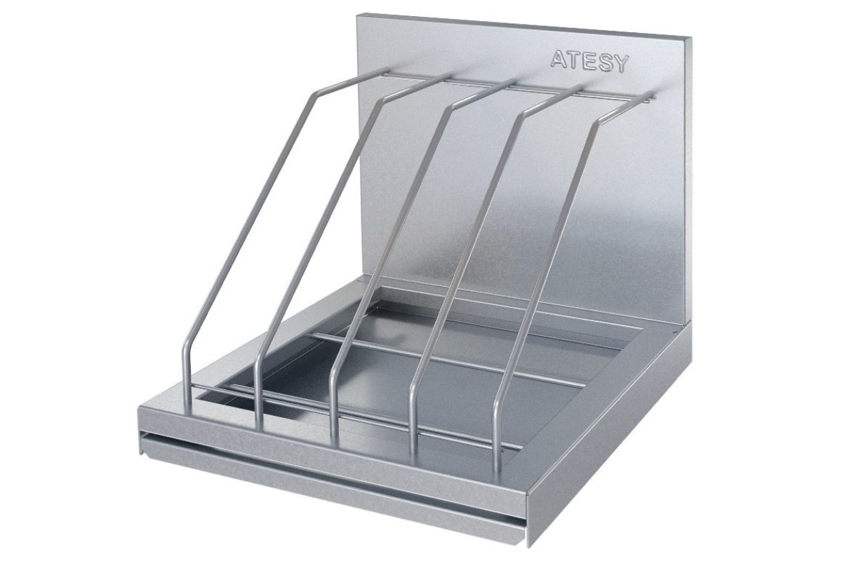 - Полка имеет отделения, выполненные из нержавеющего прутка (сталь AISI 304), для вертикального размещения разделочных досок.