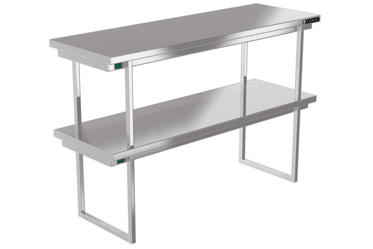 1000х400х800 Полка тепловая настольная разборная, 2 яруса. Температура в зоне действия нагревательного элемента, не более, С +605С. Полки из нержавеющей стали марки AISI 430 толщиной 0,8мм, каркас труба 20х20 из нержавеющей стали марки AISI 430 толщиной 1,2мм. Мощность 2,4кВт. Поставляется в разобранном виде., вес 10,5кг