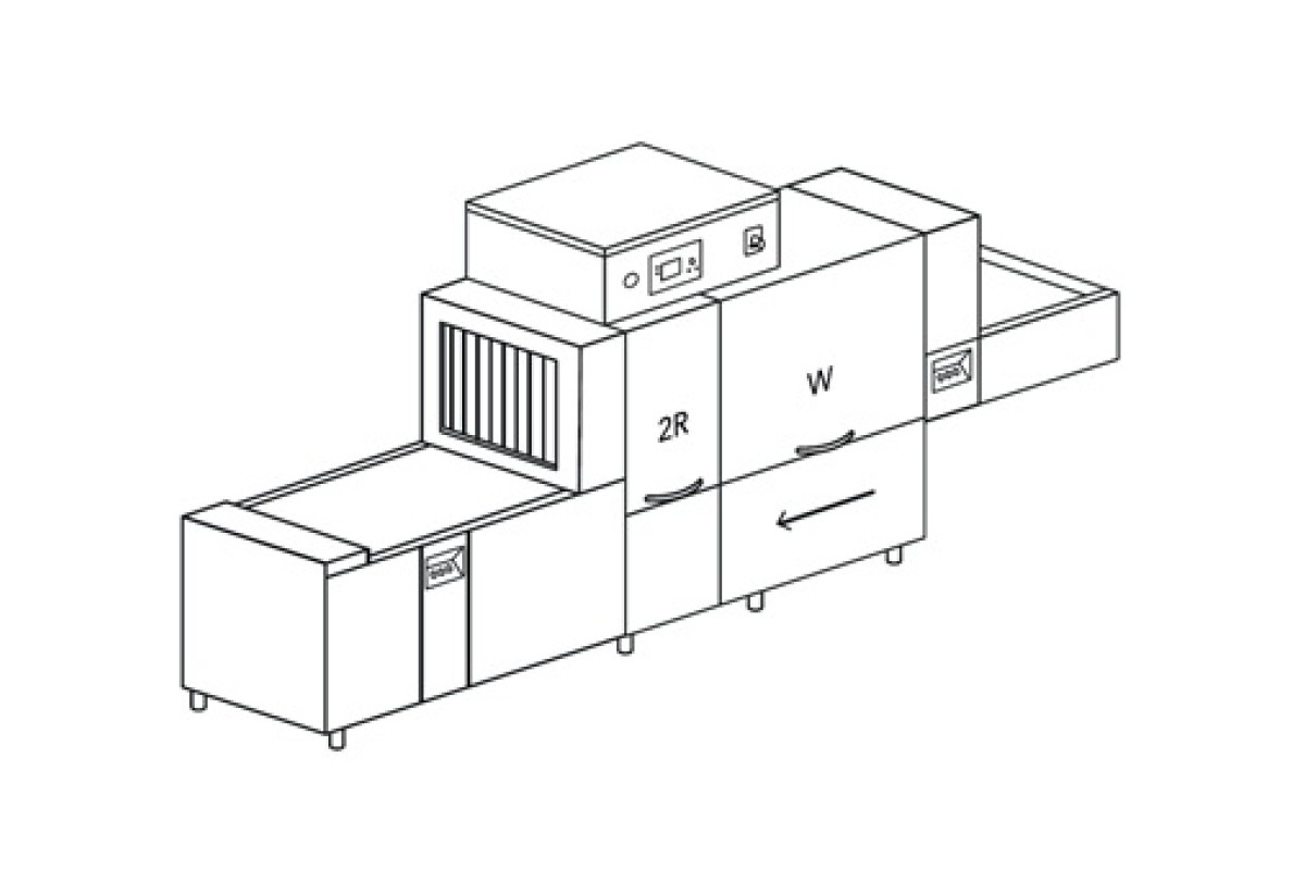 4900x985x1860/2200 мм, 400В, для сплошных ящиков, инвентаря, форм для тортов, кексов; скорость ленты 2,20 - 3,45 м/минуту (100 ящиков в час), ширина ленты- 710мм, корзина: 640xh450мм, XP - усиленный бойлер для подключения к холодной воде, движение справа-налево