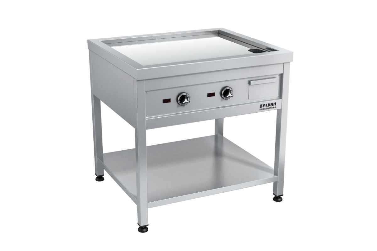 800х700х850мм, Напольная плита теппан-яки из нержавеющей стали с зеркальным хромированным покрытием, которое защищает продукты от пригорания во время жарки и обладает высокой устойчивостью к ударам ножам и царапинам. На поверхности- сливное отверстие для сбора жира, съёмный жиросборник. Широкий диапазон температур каждой из 2-ух независимых зон нагрева позволяет готовить одновременно несколько блюд, жарочная поверхность: 696х540мм, 2х4,5кВт, питание: 380В Брутто: 144кг