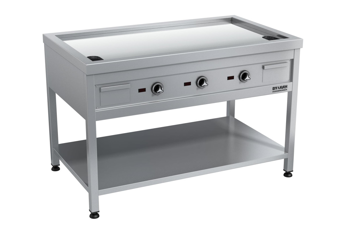 1200х700х850мм, Напольная плита теппан-яки из нержавеющей стали с зеркальным хромированным покрытием, которое защищает продукты от пригорания во время жарки и обладает высокой устойчивостью к ударам ножам и царапинам. На поверхности- сливное отверстие для сбора жира, съёмный жиросборник. Широкий диапазон температур каждой из 3-ех независимых зон нагрева позволяет готовить одновременно несколько блюд, жарочная поверхность: 1096х540мм, 3х4,5кВт, питание: 380В Брутто: 200кг